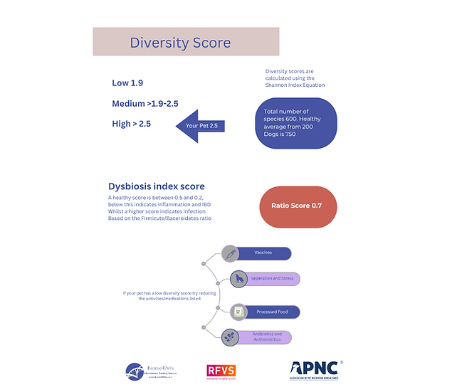 Unlock the potential of your pet's health with the Biome4Pets Microbiome Kit. This cutting-edge test offers unparalleled accuracy and precision, drawing insights from a vast database of over 10,000 dogs and cats. Specifically designed to assist in managing diet, diarrhoea, obesity, inflammation, anxiety, reactivity, allergies, and IBD, our comprehensive Biome4Pets Test delivers an in-depth report brimming with crucial information to help restore and rehabilitate your pet's health. Invest in the most professional pet microbiome test on the market, and take the first step towards improving your pet's well-being today. When ordering more than one test please make a note of which animal goes with the number on the tube. For multiple animals you may want to submit more health details than can be fitted in the mandatory box at check out (500 characters). An email will be sent out from us directly after purchase asking for more health details please fill in and submit. The report is delivered to your email inbox in 2-4 weeks